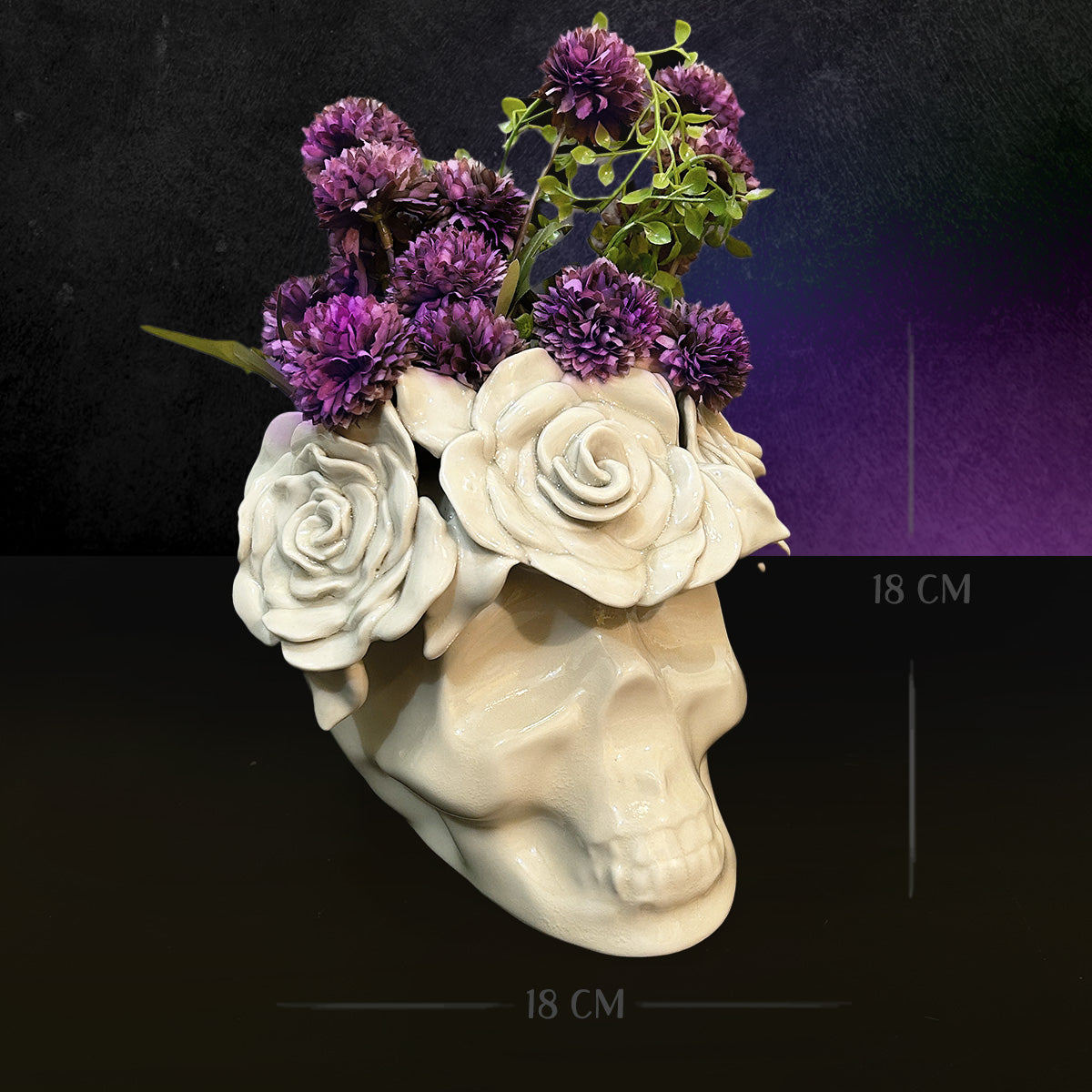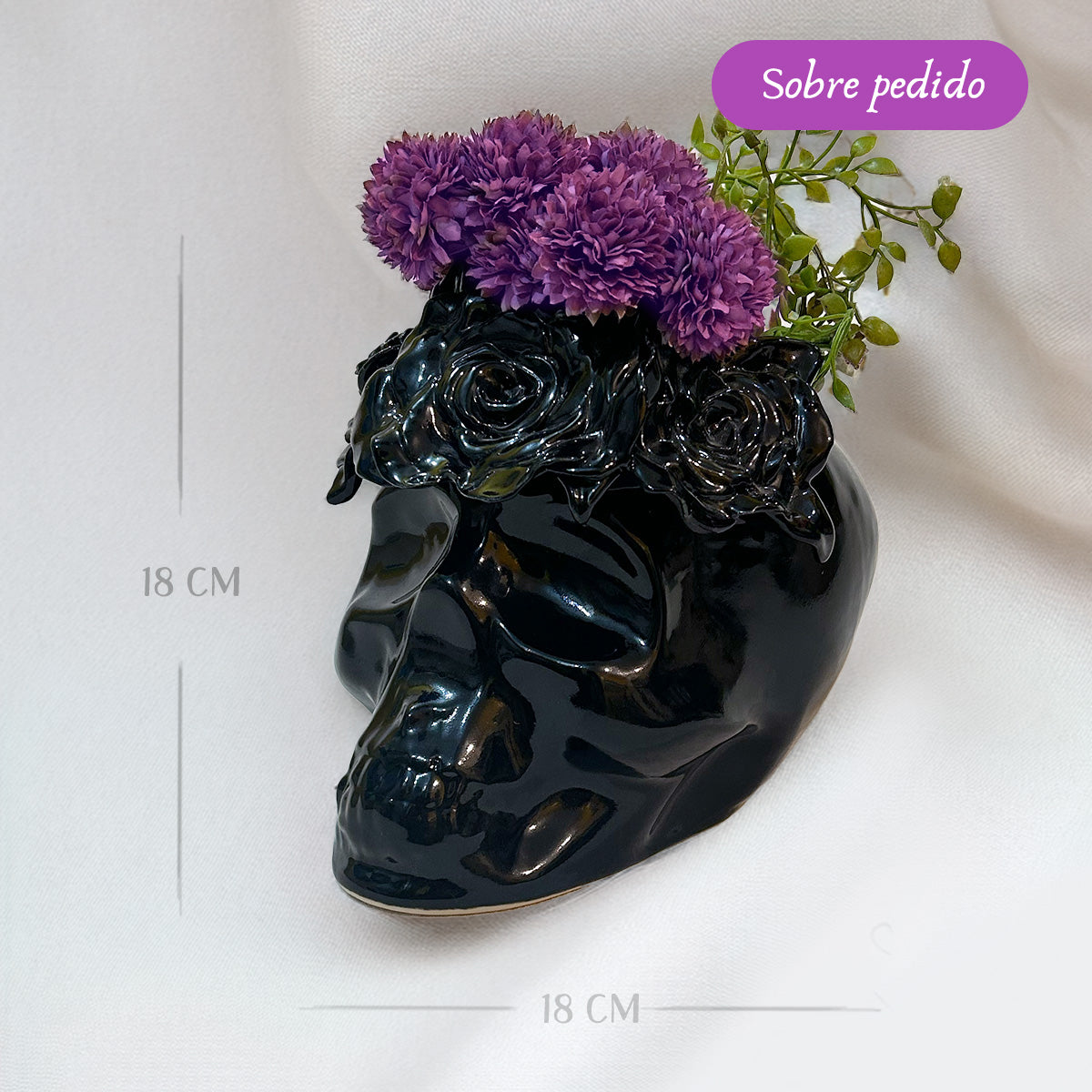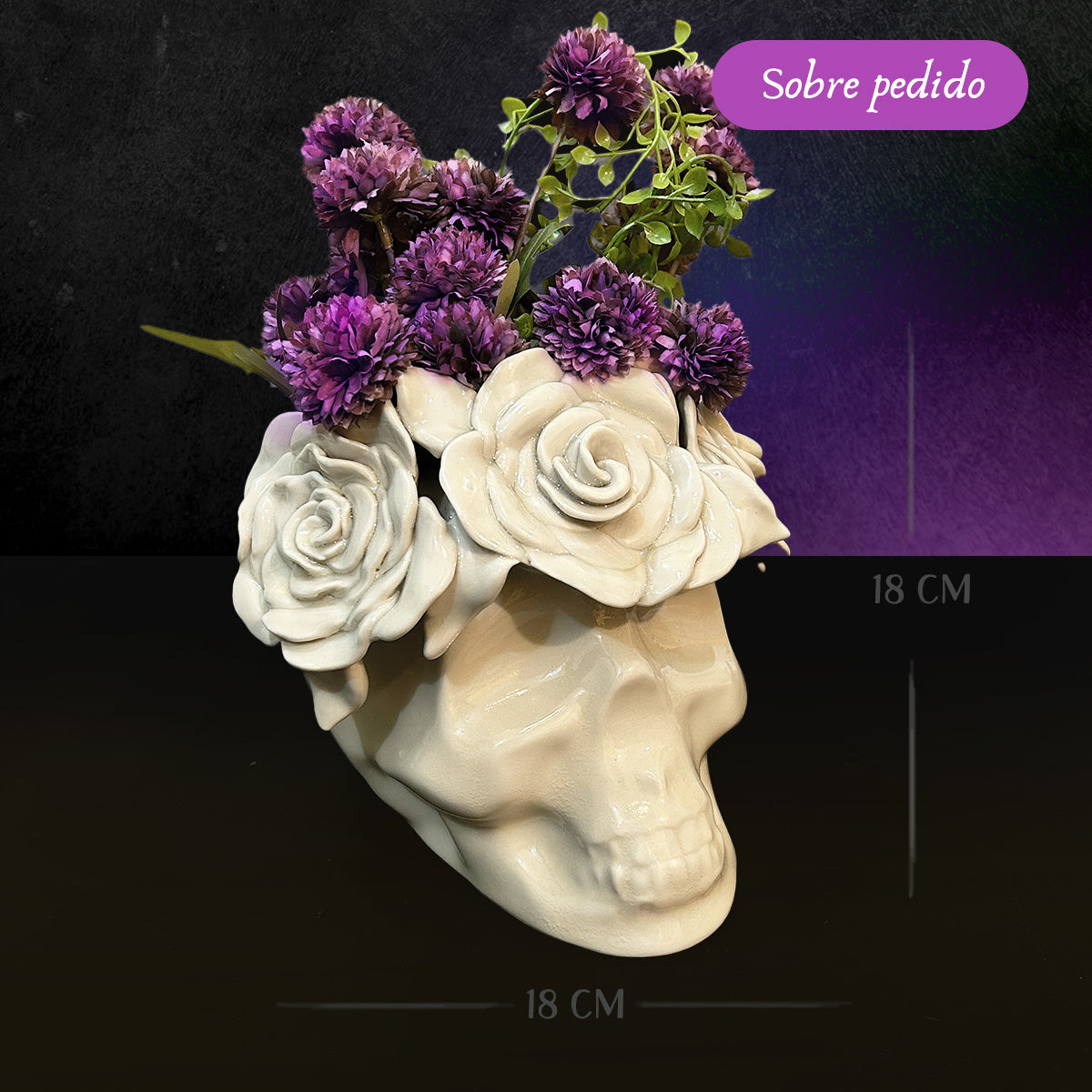 Maceta inspirada en las catrinas del día de muertos. Con flores en la cabeza, esta maceta de cerámica está hecha a mano con mucho amor y cuidado.