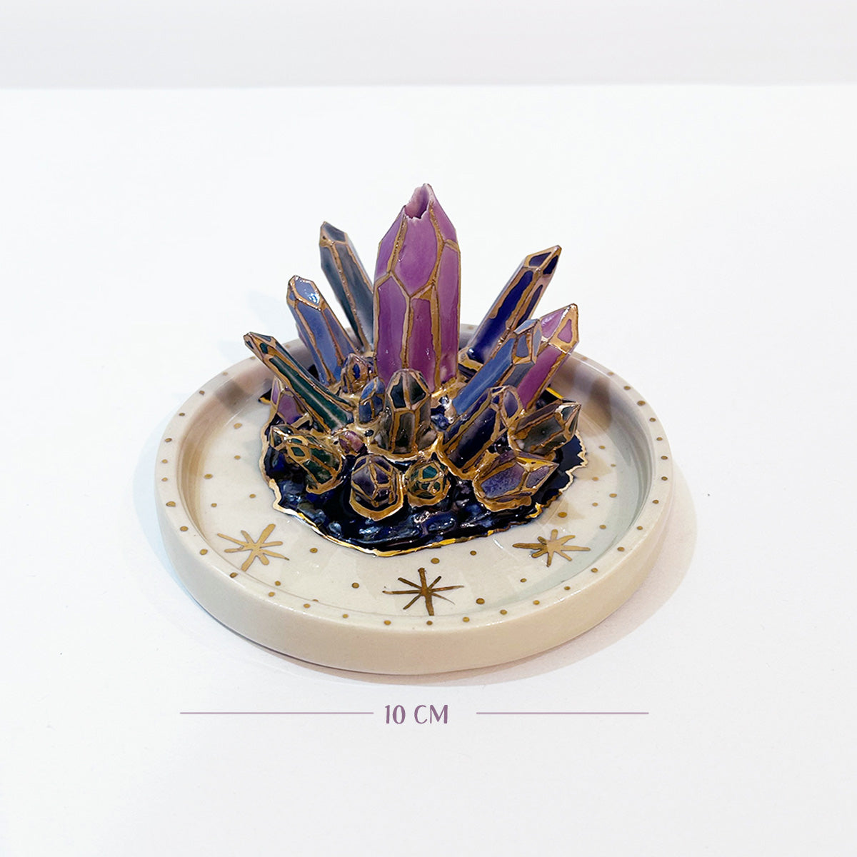 Porta anillo de cerámica inspirado en las piedras de Naica. Con detalles en oro.