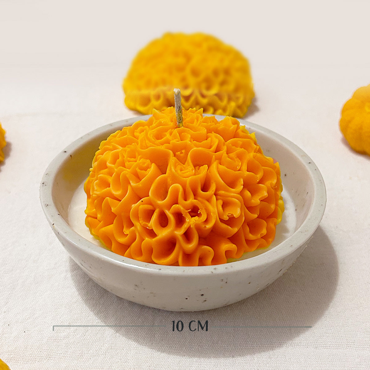 Esta hermosa vela con olor a cítrico y a cempasúchil contiene 300 ml de cera de soya, está lista para tu altar. Por lo general, estos productos se agotan en línea, pero puedes estar pendiente en nuestras redes ya que llevamos a bazares.
