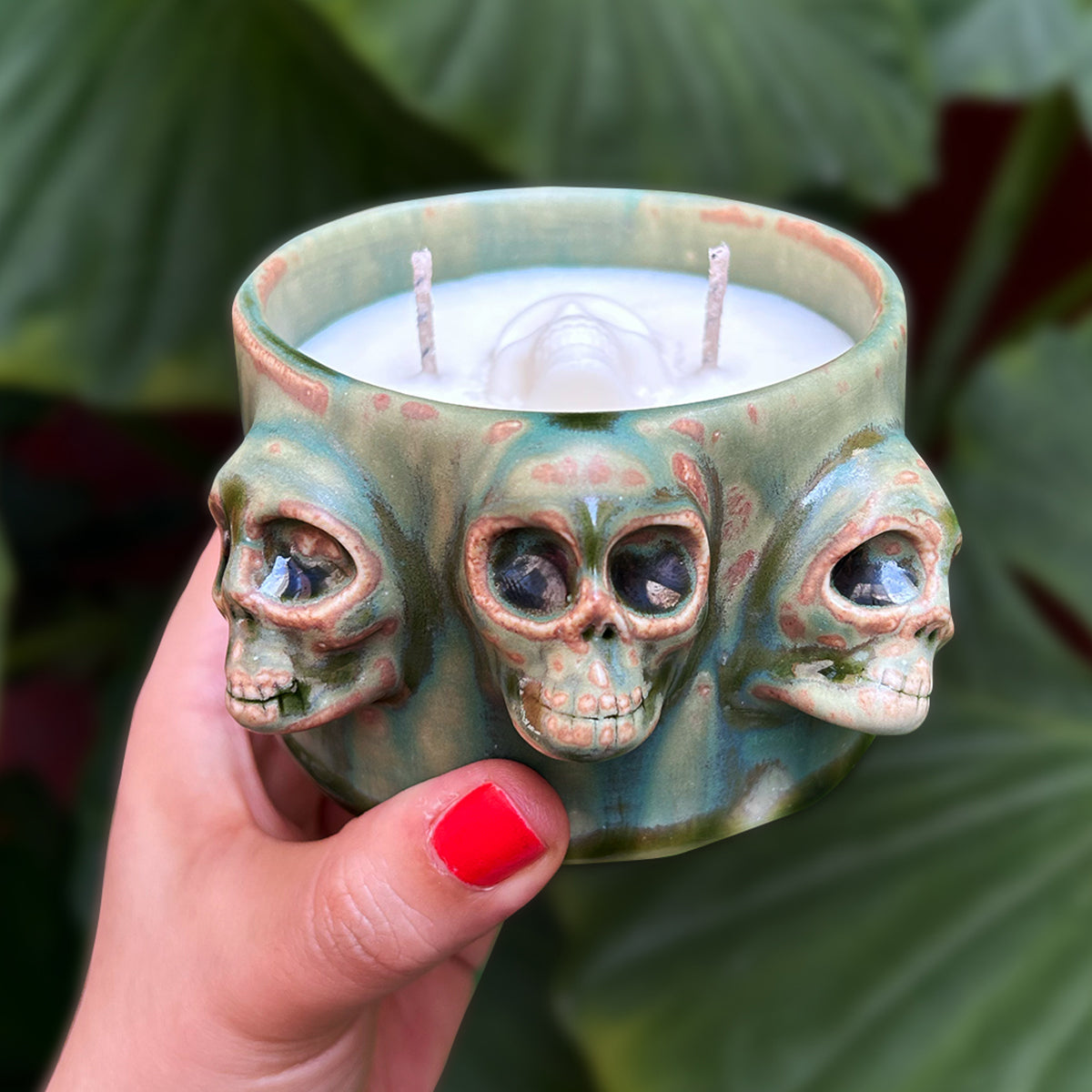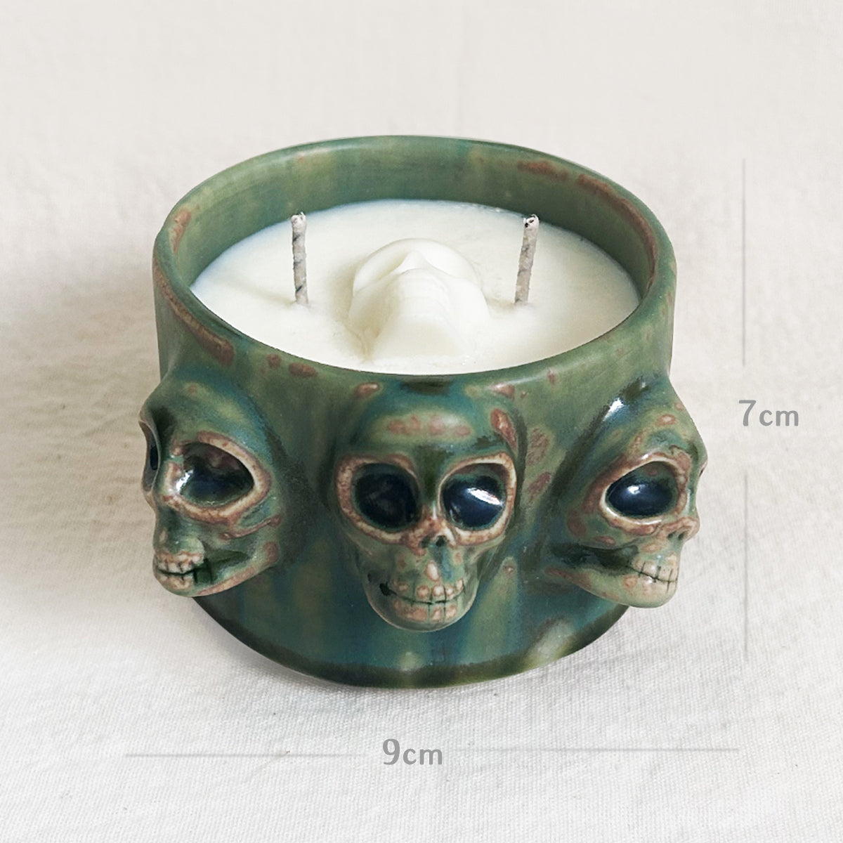 Sumérgete en la riqueza cultural del Día de Muertos con nuestro Vaso de Cerámica de tres almas. Esta pieza de cerámica de alta temperatura está adornado con tres calaveritas, rindiendo homenaje a la ancestral festividad mexicana. Su capacidad de 290ml aprox., mientras que su diseño inspirado en la deidad Tezcaltlipoca te conectará con la esencia y la tradición de esta celebración. Viene acompañado de vela de cera de soya olor bambú y flor de naranjo. Hecho con amor y cuidado, este vaso es más que una simple pieza de cerámica, es una obra de arte que incorpora la rica historia y simbolismo del Día de Muertos en cada sorbo. ¡Celebra la vida y la memoria de tus seres queridos con este excepcional vaso de cerámica!